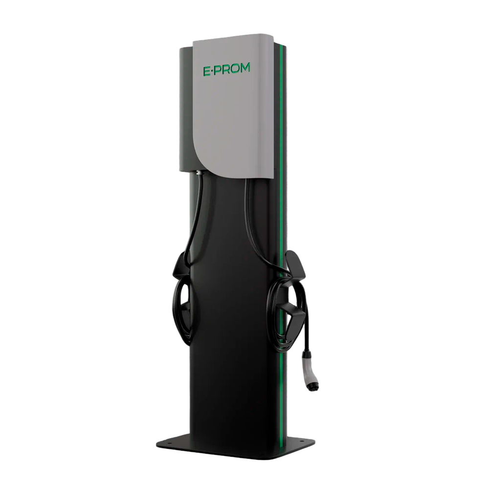 Зарядная станция переменного тока E-PROM 44 напольного типа предназначена для одновременного заряда двух электромобилей переменным током с суммарной выходной мощностью до 44 кВт,с применением таких разъемов как Type-1, Type-2 или GB/TАС (набор коннекторов зависит от пожелания Заказчика). Зарядная станция имеет модульную конструкцию, которая позволяет обеспечить ее удобный монтаж, ежедневную эксплуатацию и плановое обслуживание.
